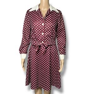 Vintage Womens Dress and Jacket Set Polka Dot A Line Red White 70s Mod Small