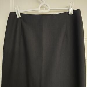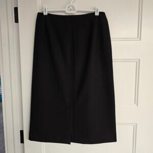Excellent condition, vintage women's Eddie Bauer black, wool blend, midi length pencil skirt. This skirt is not lined, has a back slit and has a back zipper closure. This material has minimal stretch in my opinion (even though skirt reads "stretch").
