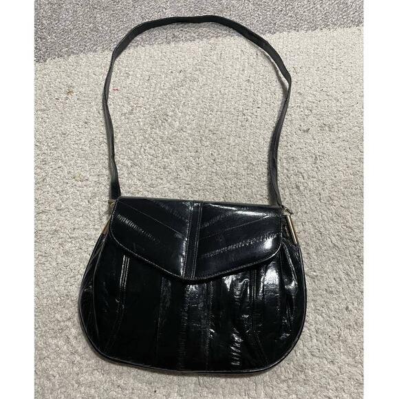 Vintage Women's Eel Skin Leather of the Sea Shoulder Bag Black Mini Purse