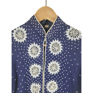 Vintage Women's Embroidered Beaded Blue Wool Cardigan Sz Med