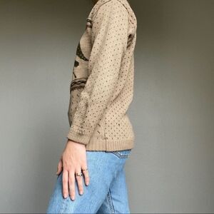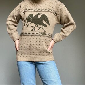 Vintage Women’s Espirt Tan Green Wool Blend Bird Mock Neck Sweater Sz S