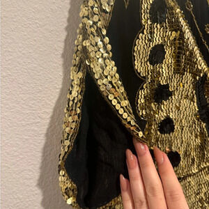 80’s Disco, bohemian, festivals, vintage black and gold sequin over silk butterfly top