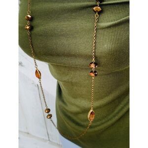 Vintage Women’s Faceted Glass Beaded Copper Long Station Chain Necklace 50”