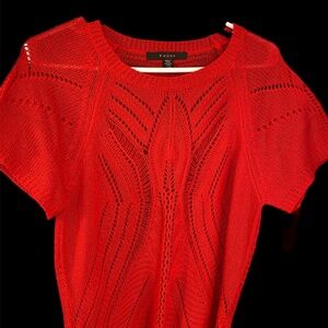 Vintage Womens Fever Brand Knitted Short Sleeve Round Neck Blouse Top Large
