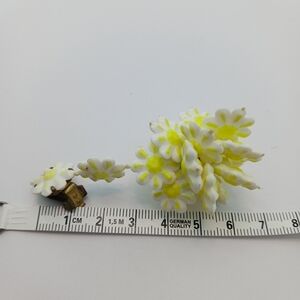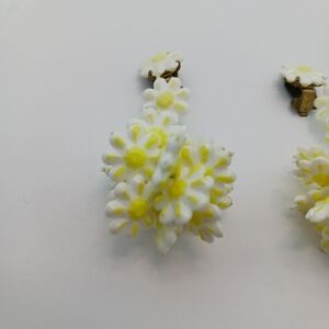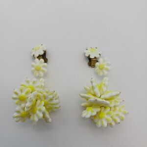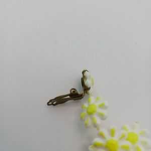 Vintage Womens Flower White Yellow 60s 70s Gogo Style Bold Boho Clip On