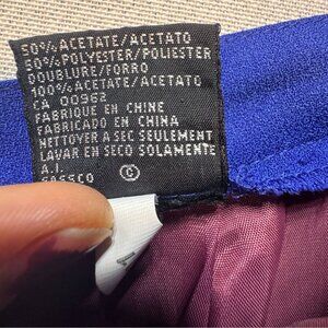 This regal royal blue skirt blends sophistication with comfort, ideal for formal settings. Crafted with a durable acetate-polyester mix, it features a side zipper closure and is fully lined with a contrasting red interior. Its elegant cut flatters the figure, making it a timeless addition to refined wardrobes.