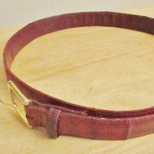 Vintage women's genuine eel skin belt. Unbranded. Size 32. Dark red/maroon with gold buckle. There is some wear on holes where the buckle was inserted (see photos #6-7). No tears or rips that I can see.