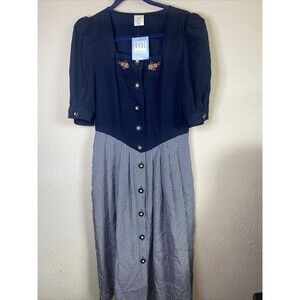 Brand new with tags . gorgeous Authentic Mode aktuell German Trachten Dirntel Kleid long cottage core Praire peasant linen blend plaid and blue square neck dress with floral embroidery perfect for octoberfest Oktoberfest heritage folk dance