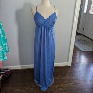Vintage Women's Gilead Blue Small Nightgown Slip USA Made Braided Lace