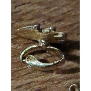 Vintage Womens Gold Tone Clam Seashell Clip On Earrings Grass 60s? Seaweed Small