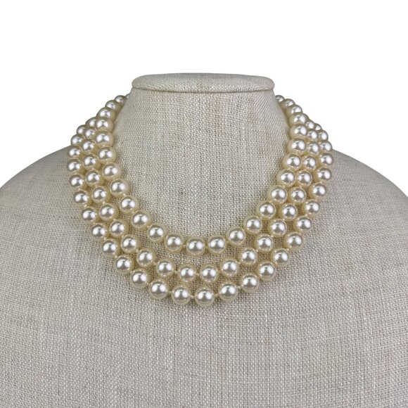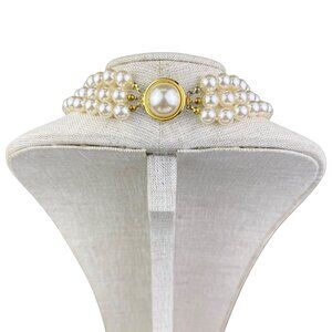 Vintage Womens Gold Tone Faux Pearl Necklace 3-Strand Choker Elegant Jewelry