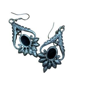 Vintage Women's Gray Dangle Teardrop Rhinestone Gemstone Earrings