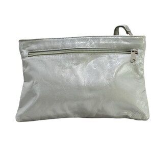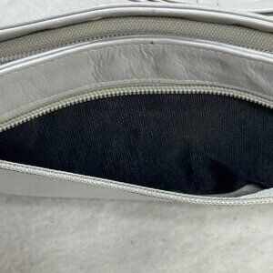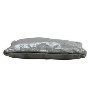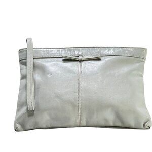 Vintage Women's Gray Leather Wristlet Clutch Purse Bow Detail & Zipper Pocket
