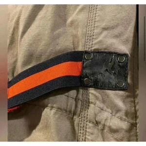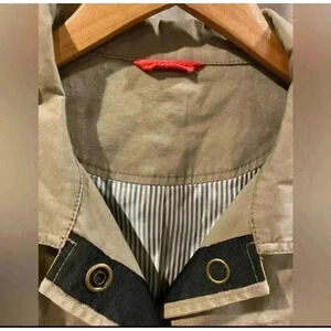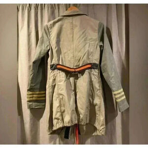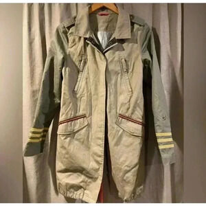 Found this antique shopping and bummed it doesn’t fit! Adorable green army jacket with a ton of fun accents. Drawstring bottom hem. Includes lots of pockets, blue and red striped accents, gold accents, and one gold star. fully lined No formal tag.