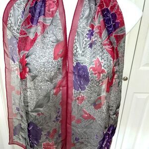 Vintage Women's Grey/Fuschia/Purple Oblong Floral Chiffon Scarf