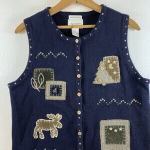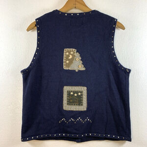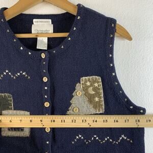 Vintage Womens Hand Embroidered Sweater Vest Sz S Novelty Cottage Rustic Folk