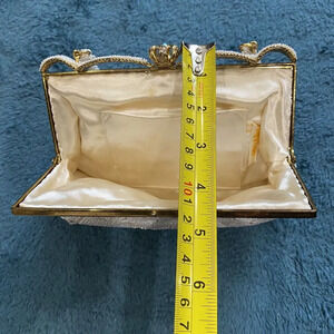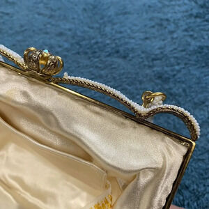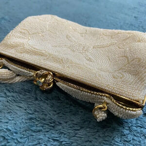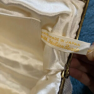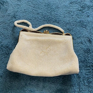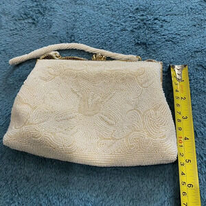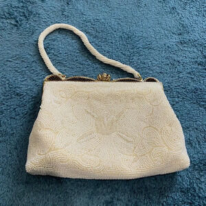 Vintage Women's Handbag Made In Japan Ivory White Italian Bead Purse Clasp