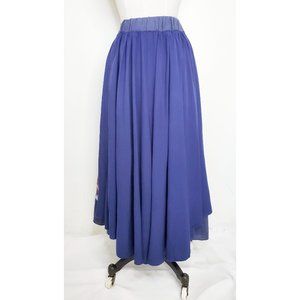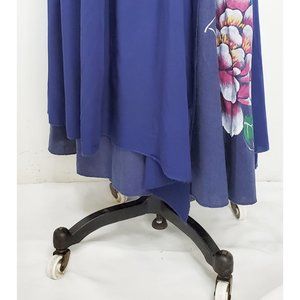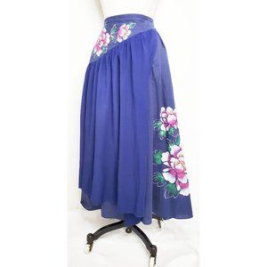 Vintage Womens Handmade Handpainted Floral Layered Flared Skirt Blue XS/S