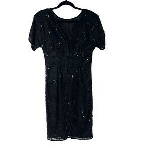 Vintage Women's In Fashions Sequin Beaded Button Front Sheath Dress Black Small