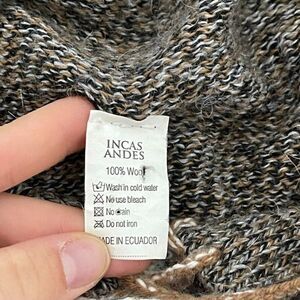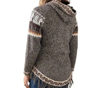 Vintage Womens Incas Andes Brown Alpaca Peruvian Soft Hoodie Fringe Sweater Sz M