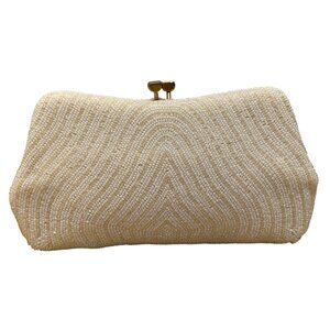 Vintage Women’s Ivory Beaded Made in Japan Kiss Lock Evening Clutch