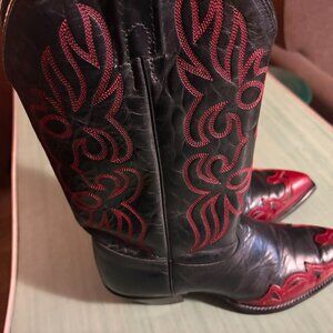 Vintage Womens J. Chisholm Black Red Western Cowgirl Boots