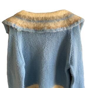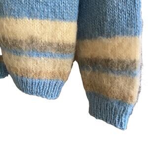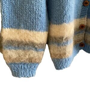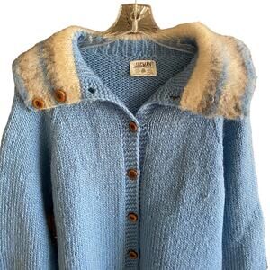 Vintage Women's JAGMAN Wool Cardigan Sweater Handknit Blue Retro Fuzzy M L XL