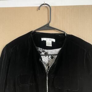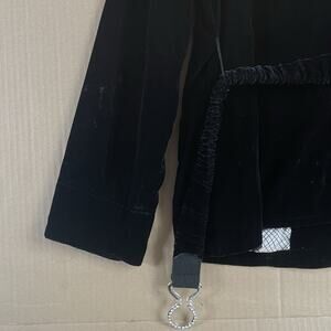 Vintage Women’s Jacket Y2K Black Velvet Full Zip Rhinestone Detail Belted Bling