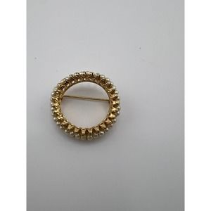 Vintage Women's Jewelry Gold-Tone White Pearl Round Ring Scarf Brooch Pin