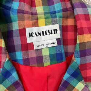 Vintage Womens Joan Leslie Linen Blend Blazer Size 16 (1X) Multicolor Plaid