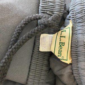 Vintage Women's LL Bean Joggers. Cute little snap back button pocket. Inside waist tie and side pockets. Assembled in Honduras of US components. 100% nylon. Waist - 26 with elastic at rest (elastic solid), hips - 21, inseam 26 (27 if you include the elastic bottom cuff), length - 36 (not including waist band), cuff opening - 5 and a bit with elastic at rest.