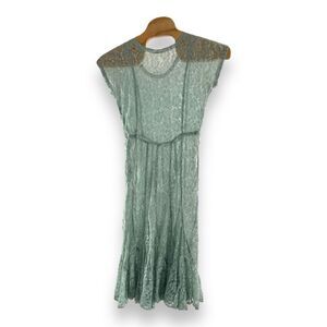 Vintage Women's Lace Sheer Crew Neck Midi A-Line Dress Green Size Medium