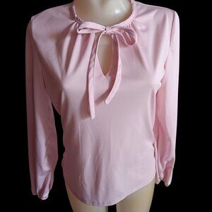Vintage Women's Large 11/12 Blouse Top 1980's Sexy Secretary Rose Pink Keyhole