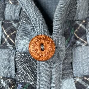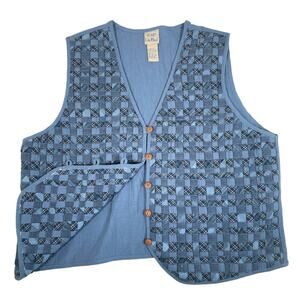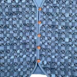 Vintage Womens Large Blue Patch Woven Plaid Cotton Vest