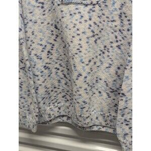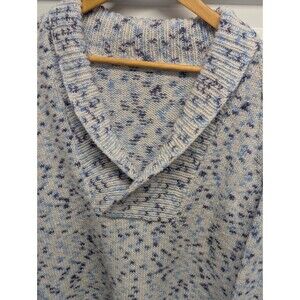 Vintage Women's Large Cowl V Neck Knit White with Blue Sweater