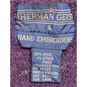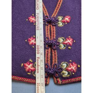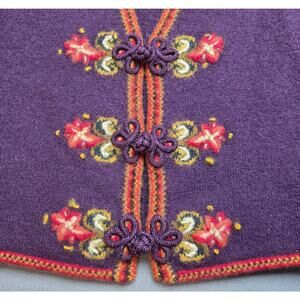 Vintage Womens Large Herman Geist Wool Cardigan Sweater Purple Hand Embroidered