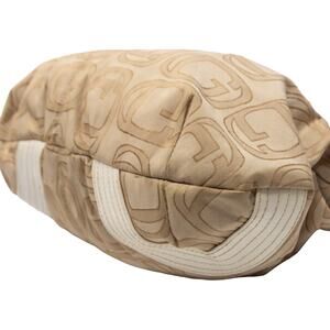 Vintage Womens Large Purse Tan White G Signature Roomy 3 Compartment Satchel Bag