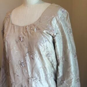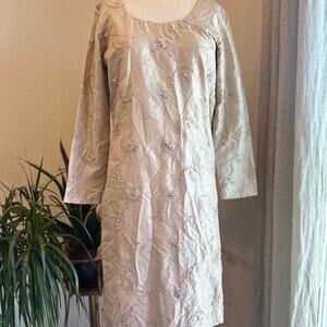Vintage Women’s Large Tunic Beige Embroidered Sheath Dress Long Sleeve Formal Beaded Sequins