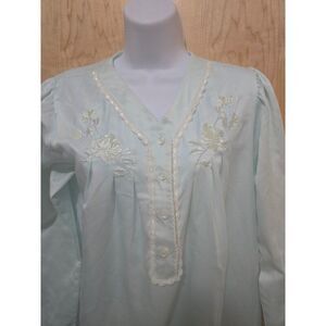 Vintage Womens Light Blue Embroidered Long Sleeve Nightgown With Lace & Button
