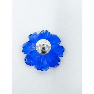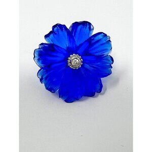 Vintage Womens Liuli Blue Flower Pin With Rhinestone In The Middle