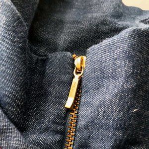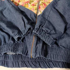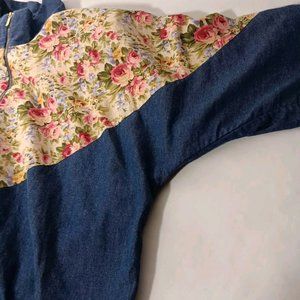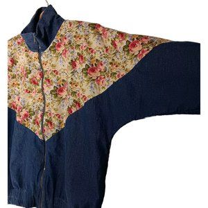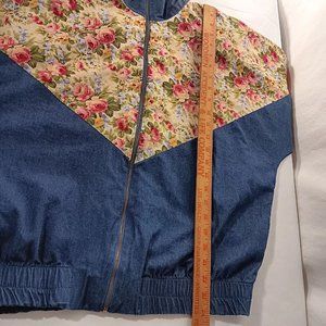 Vintage Womens M Jacket Lightweight Chambray Floral Peony Alice Martin Zip Up