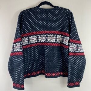 Vintage Women’s Marsh Landing Black Red White Fair Isle Sweater Cardigan Large