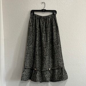 Vintage Women’s Maxi Black Gray Paisley Skirt Button accent Cottage Core Sz L
