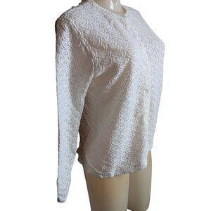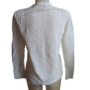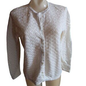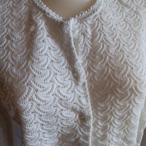 Vintage Women's Medium 1960's White Lace Knit Button-Up Cardigan Sweater Japan