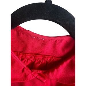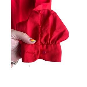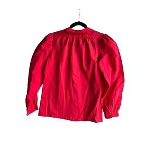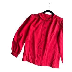 Vintage Women's Medium Puff Sleeve Retro Secretary Glam Blouse Button Up Red