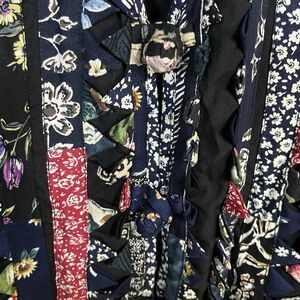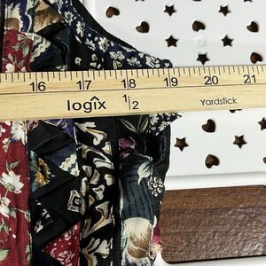 This Vintage Women's Medium Soul Mates Patchwork Quilt Vest is a charming addition to any wardrobe, showcasing a colorful and eclectic design typical of the 1980s boho style. Made from rayon material, this vest is perfect for everyday wear and is sure to add a touch of whimsy to any outfit. The multi-color patchwork quilt design adds a unique and rustic charm, reminiscent of a cottage or farmhouse aesthetic. Perfect for adding a pop of color and personality to your look, this vest is a one-of-a-kind piece that is sure to stand out.