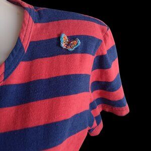 Vintage Women's Medium T-shirt Single Stitch 1970's Striped Butterfly Patch boho