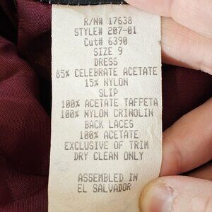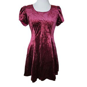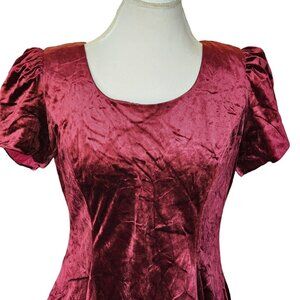 Vintage Womens Medium Velvet Formal Dress Strappy Back Fit N Flare 90s Burgandy
