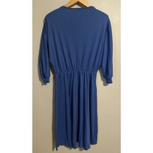 Vintage Womens Midi Dress Size 12 Blue Long Sleeve Neutral Minimalist 80s FLAW