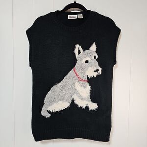 Vintage Womens Miniature Schnauzer Fuzzy Dog Sleeveless Pullover Sweater Small